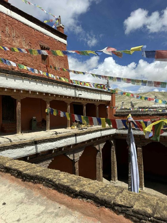 Lomanthang ble dannet som et kongerike på 1300 tallet, og byen ble etablert med samme navn. Den gangen var den sentral for karavaneferdselen fra Kina som en mini silkevei. Byen fikk bymurer som beskyttelse mot fiender. Det er utrolig idyllisk her. Vi har vært på vandring i gamlebyen og besøkt klostre og templer. Alle hus der er ca. 6-700 år gamle. I og med at alt er bygd av leire og stein, er de gamle bygningene fortsatt intakte, de har ikke brent.