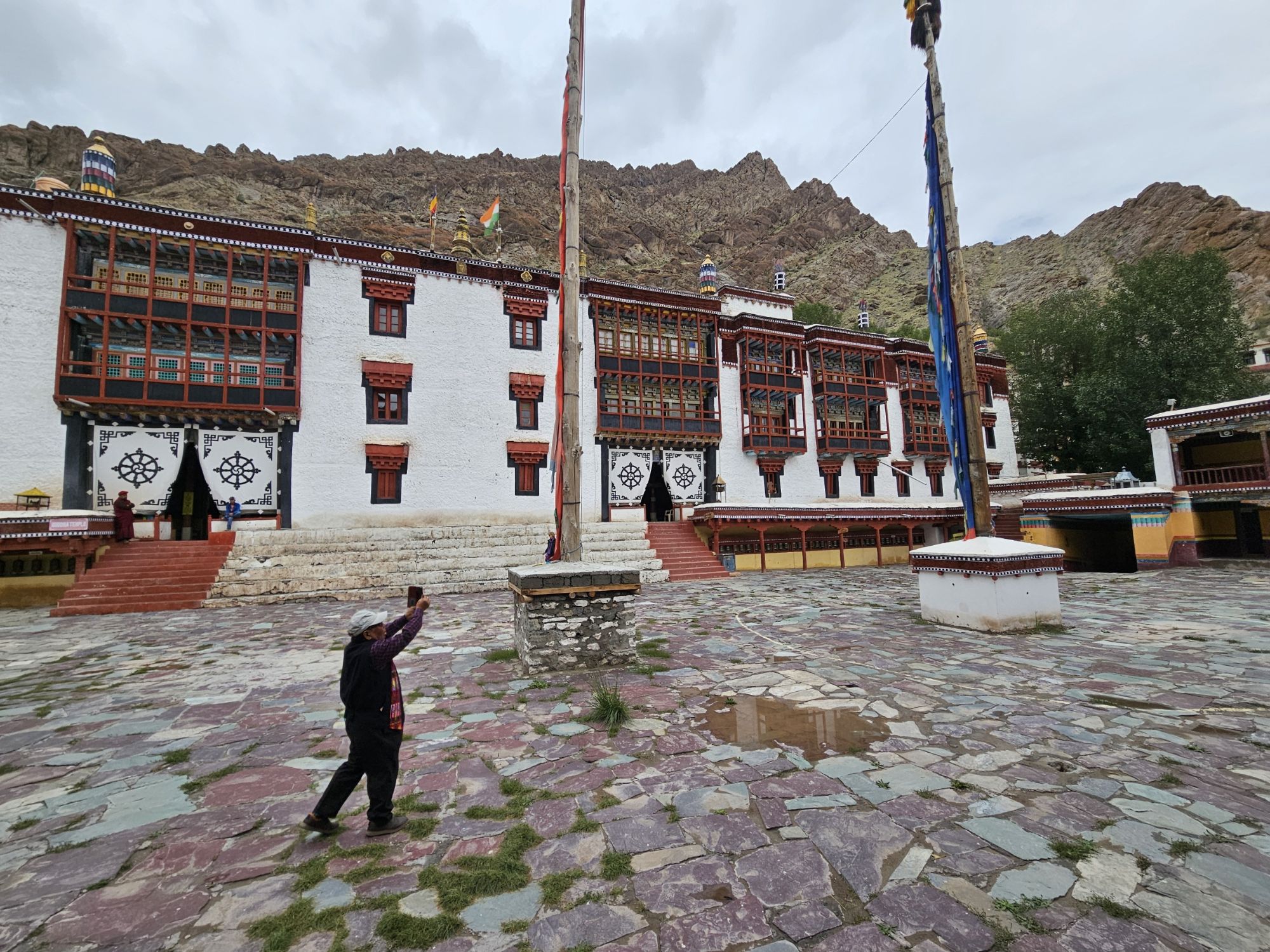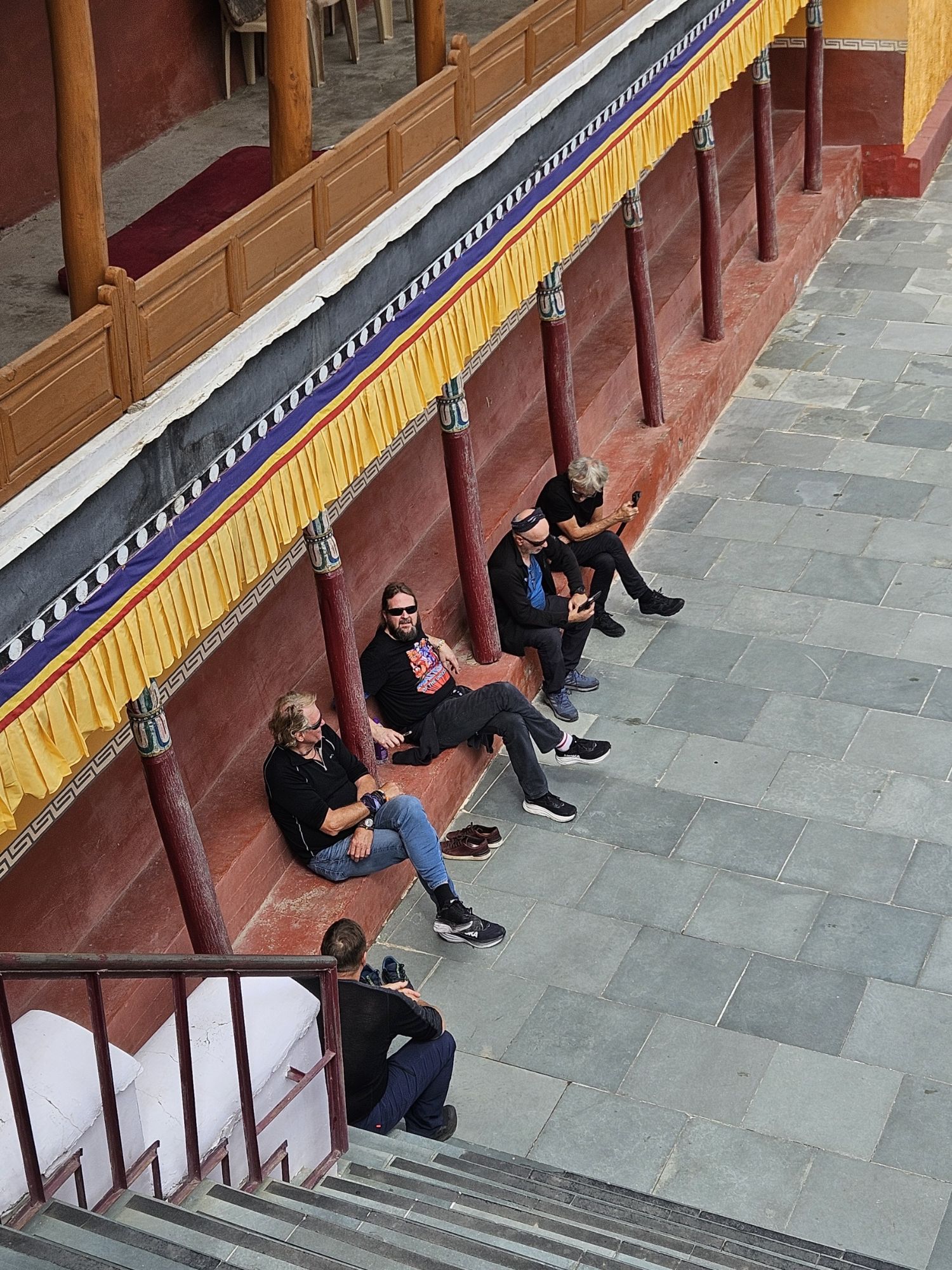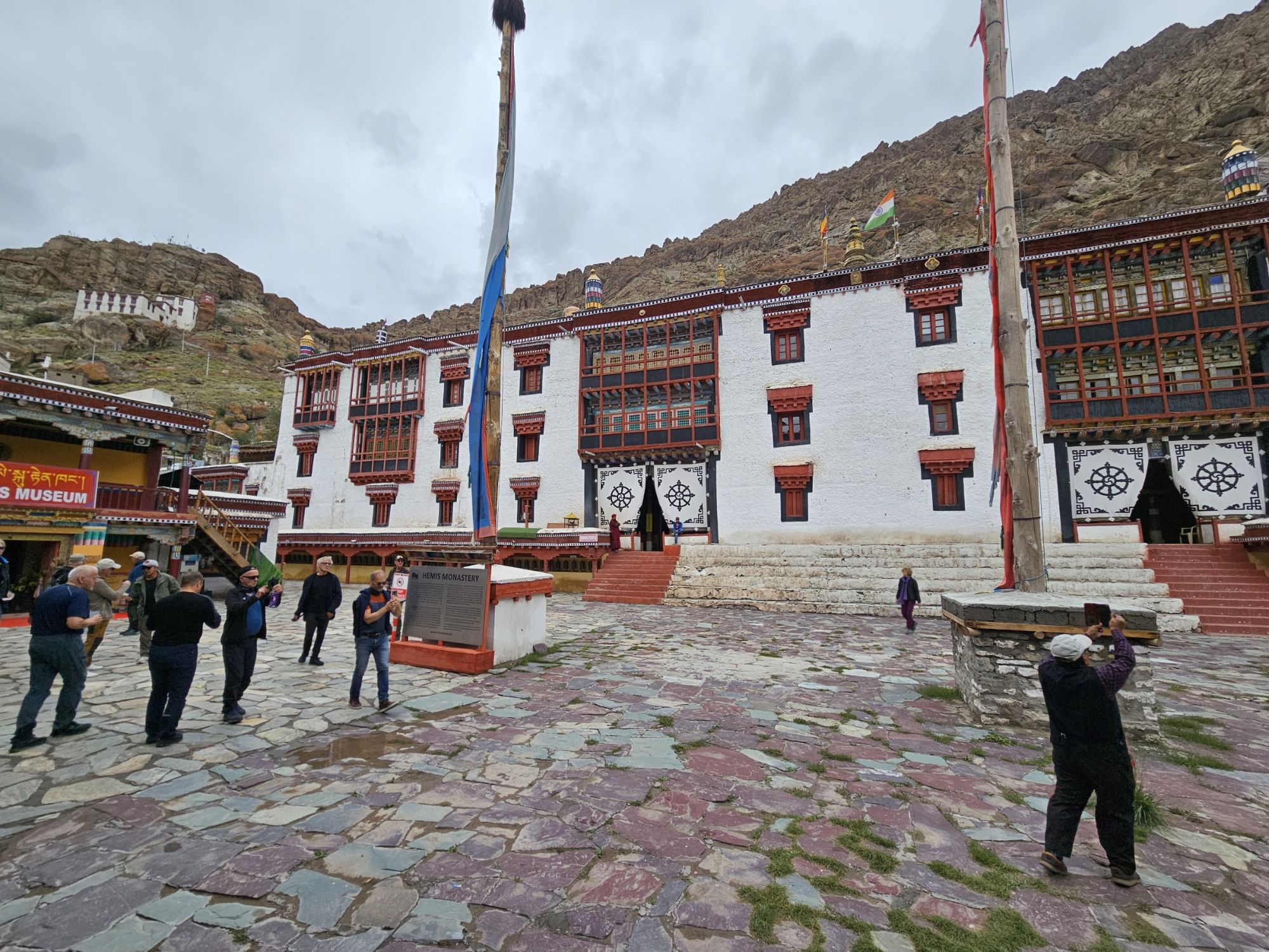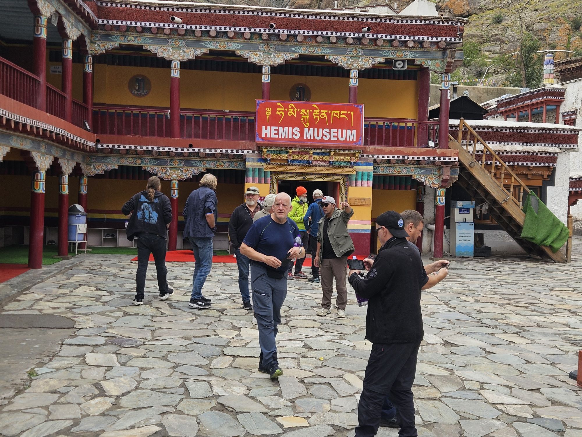 Sjette kjøredag, i dag ble det buss for mc. Dagen startet med frokst kl 9, vi blir hentet på hotellet med buss kl 10, for en runde på kloster besøk.Bussturen var en opplevelse i seg selv, sjåføren var tydeligvis vant med å kjøre på akkord….. Først gikk turen til Hemis Monastery, som er det største i Ladakh området. Guiden vår ga oss en god innføring i budisme og Hemis historie.